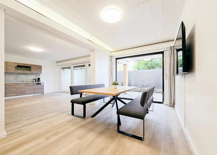 Das 100 m^2 große Raj Living - 3 Room Apartment With Terrace - 25 Min Messe Dus Duisburg befindet sich im Bezirk Buchholz von Duisburg und bietet Unterkunft in 10 Fahrminuten Entfernung von den kulturellen Sehenswürdigkeiten wie dem Angerpark mit Tiger and Turtle - Magic Mountain.